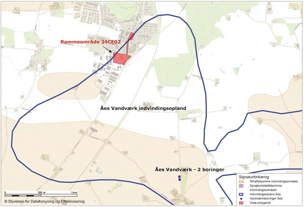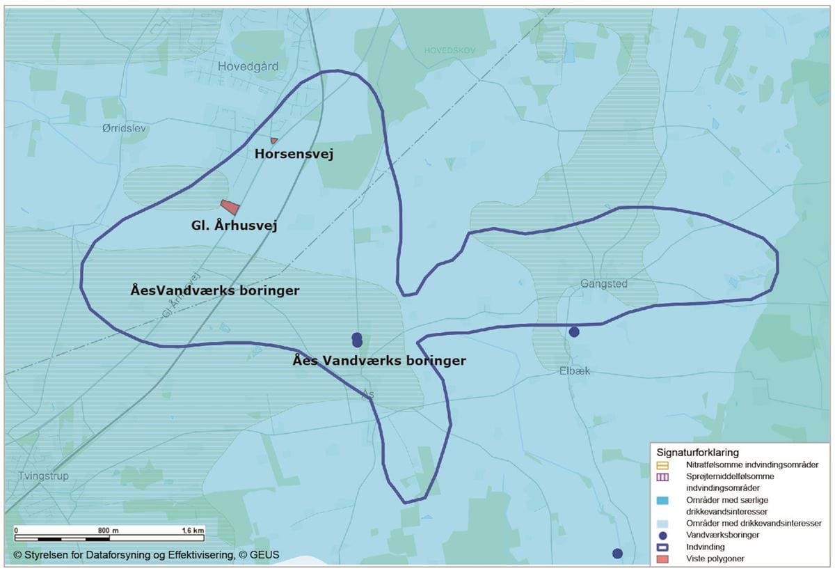 Udlægget ligger indenfor Hovedgård OSD’et og indenfor indvindingsoplandet til Åes Vandværk.