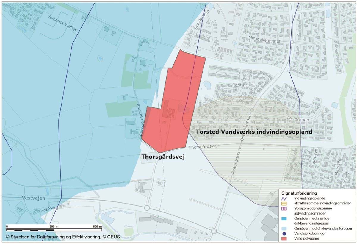 Udlægget ligger indenfor Rugballegård OSD’et og delvist indenfor indvindingsoplandet til Torsted Vandværk.