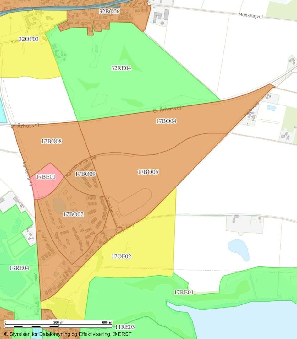 Større sammenhængende landskaber (udsigt): Omfatter kun den sydlige del af rammeområde 17BO05. Det vurderes ikke at komme til at omfatte lokalplanområdet.