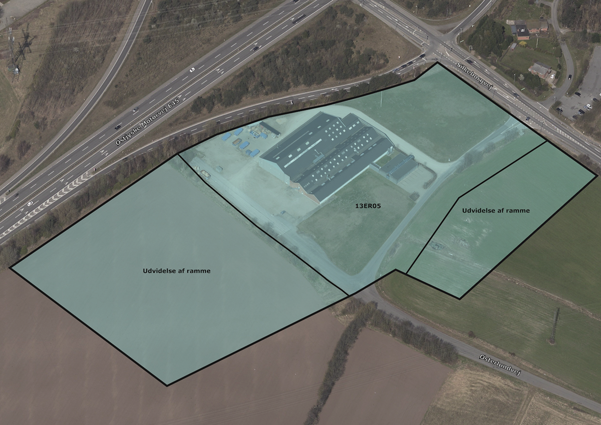 Arealudlægget er omfattet af lokalplan 1-2012, Område nord for Bygholm Sø, som har til formål at indrette området til rekreative formål herunder etablering af støjvolde syd for rammeområde 13ER05. Støjvoldene etableres for at mindske trafikstøj fra E45 i boligområdet Bygholm Bakker. Der skal derfor også vedtages en ny lokalplan, for at realisere en eventuel udvidelse af produktionsvirksomheden.