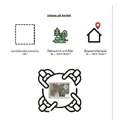 - at borgerne kunne sætte sit præg på planlægningen, ved at komme med input til administrationens forslag til byggemuligheder, udkig og rekreative områder i de enkelte landsbyer.