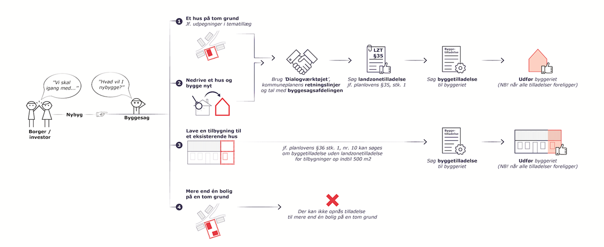 - Der kan kun opføres nye boliger, som erstatning for en eksisterende bolig eller som vist i Opslagsværket: Landsbyernes udvikling og bevaring.