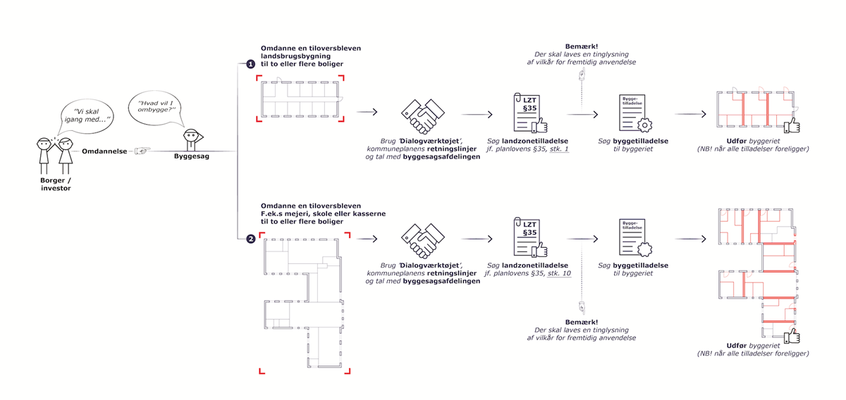 - Omdannelse skal ske i overnestemmelse med Dialogværktøjet: Landsbyernes udvikling og bevaring.
