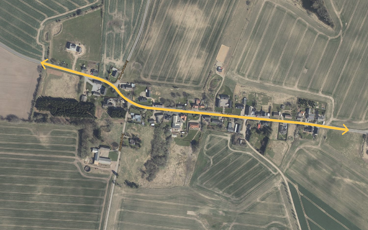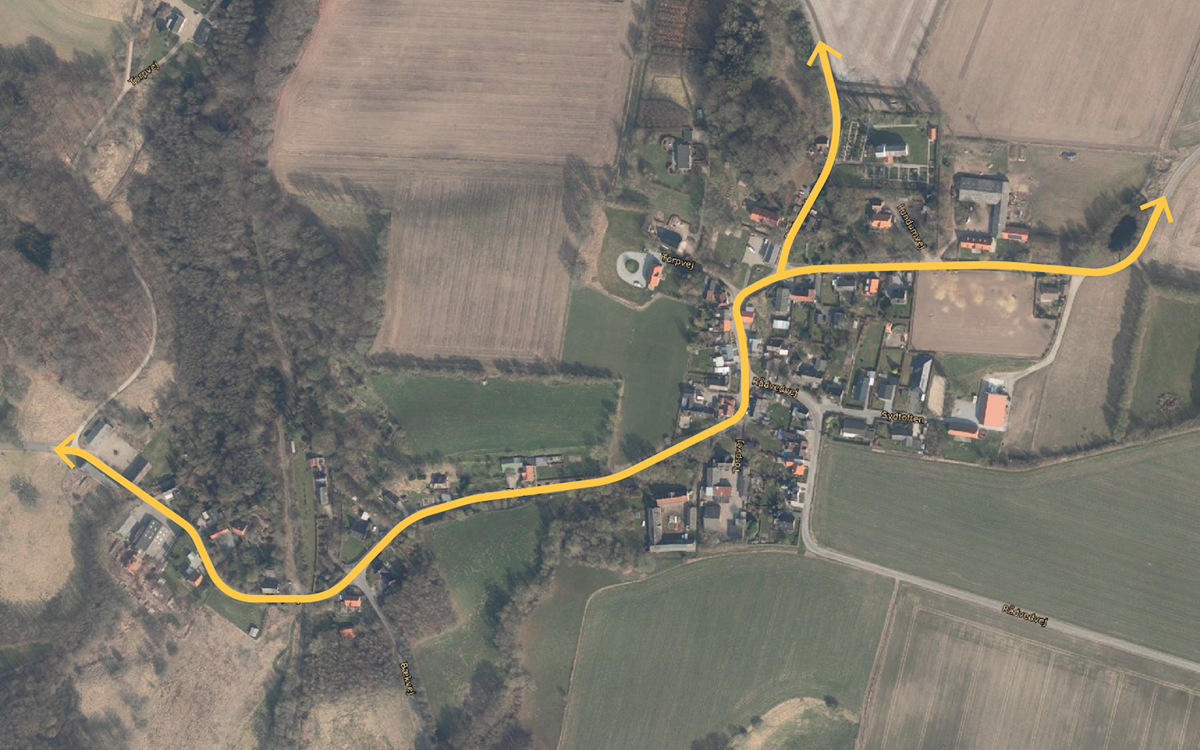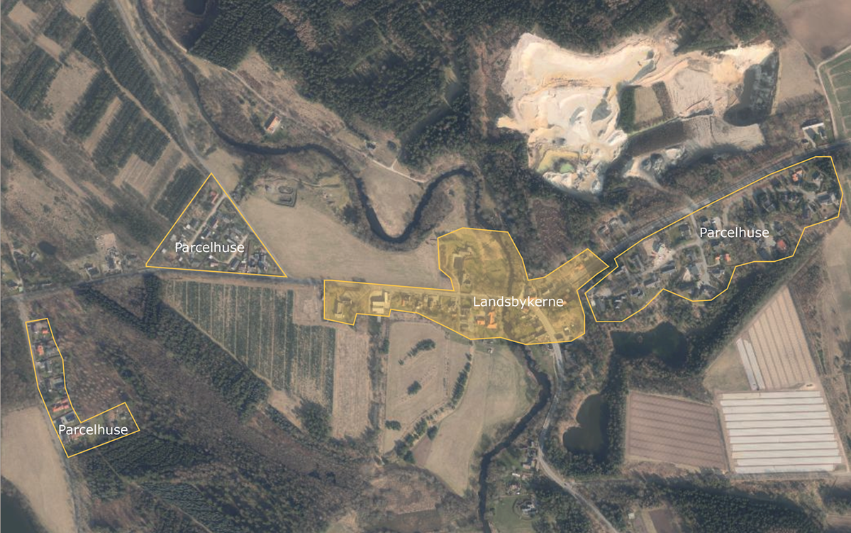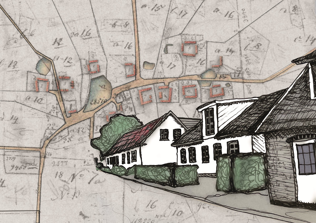 Landsbyerne er oftest bebyggede med små åben-lav boliger mellem store gårde og husene er typisk placerede i én række på hver side af gaden. Husene er som hovedregel placeret på grundene, så de ligger parallelt med og tæt på ”hovedgaden” i landsbyen. Indgangsfacaden er således orienteret mod ”livet i landsby-gaden” til den ene side og havefacaden mod det åbne landskab med marker, skov og natur til den anden.
