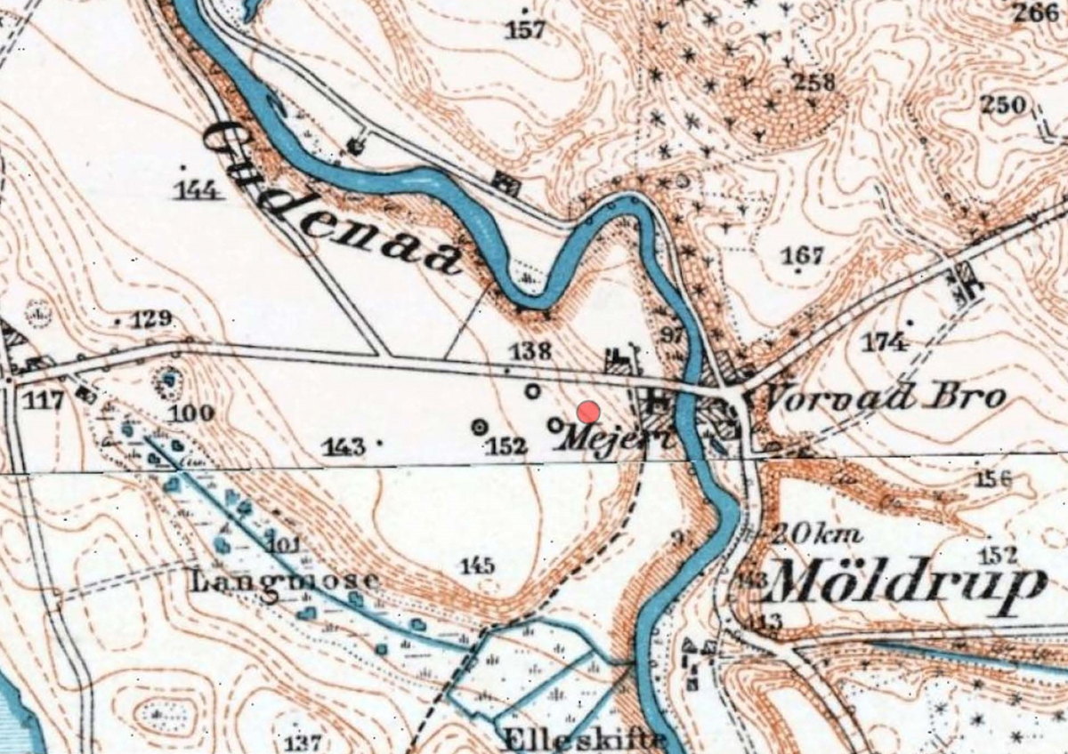 Lave målebordsblade 1901-171 over landsbyen Voervadsbro.