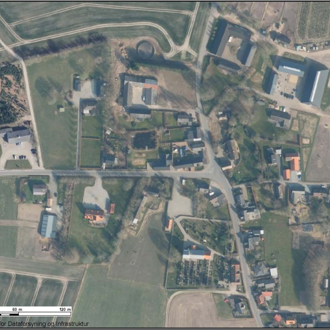 Luftfoto, som viser Voervadsbro landsby i 2023.