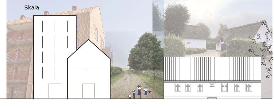 I dette afsnit beskrives det, hvordan man samlet set kan tilpasse potentielt fremtidige boliger til landsbyens skala, arkitektur, gaderum, kulturhistoriske bevaringsværdier og lignende, ved fokus på tre simple formgivningsgreb - Placering, Form og Skala.