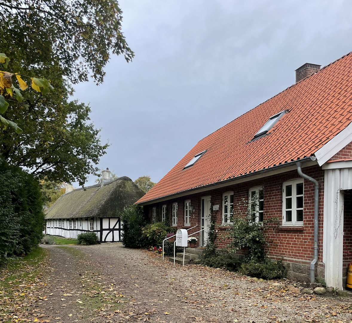 Billede af moderne landsbybyggeri, som i skala og udformning trækker paralleller til klassisk landsbybyggeskik.
