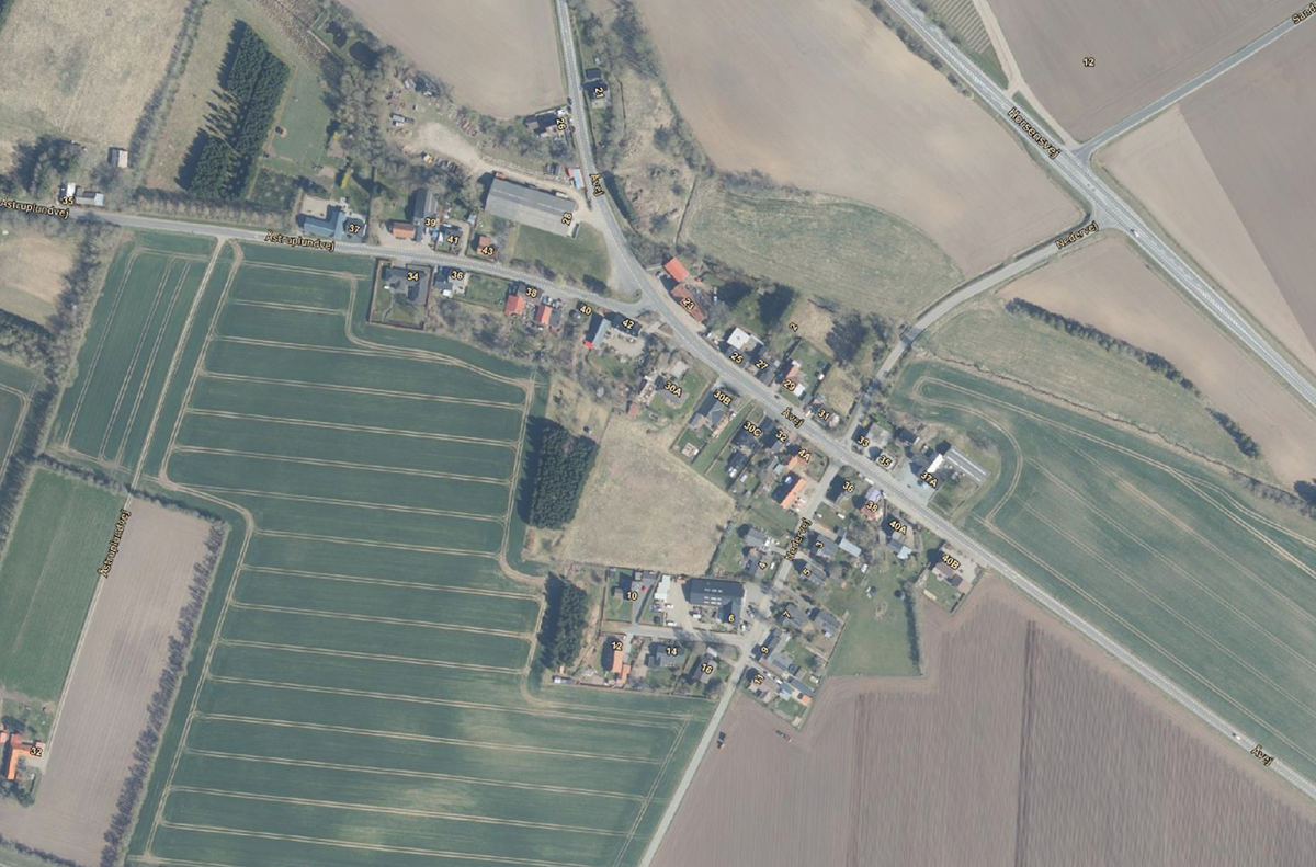 Billedet viser et vejforløb i Åstruplund.