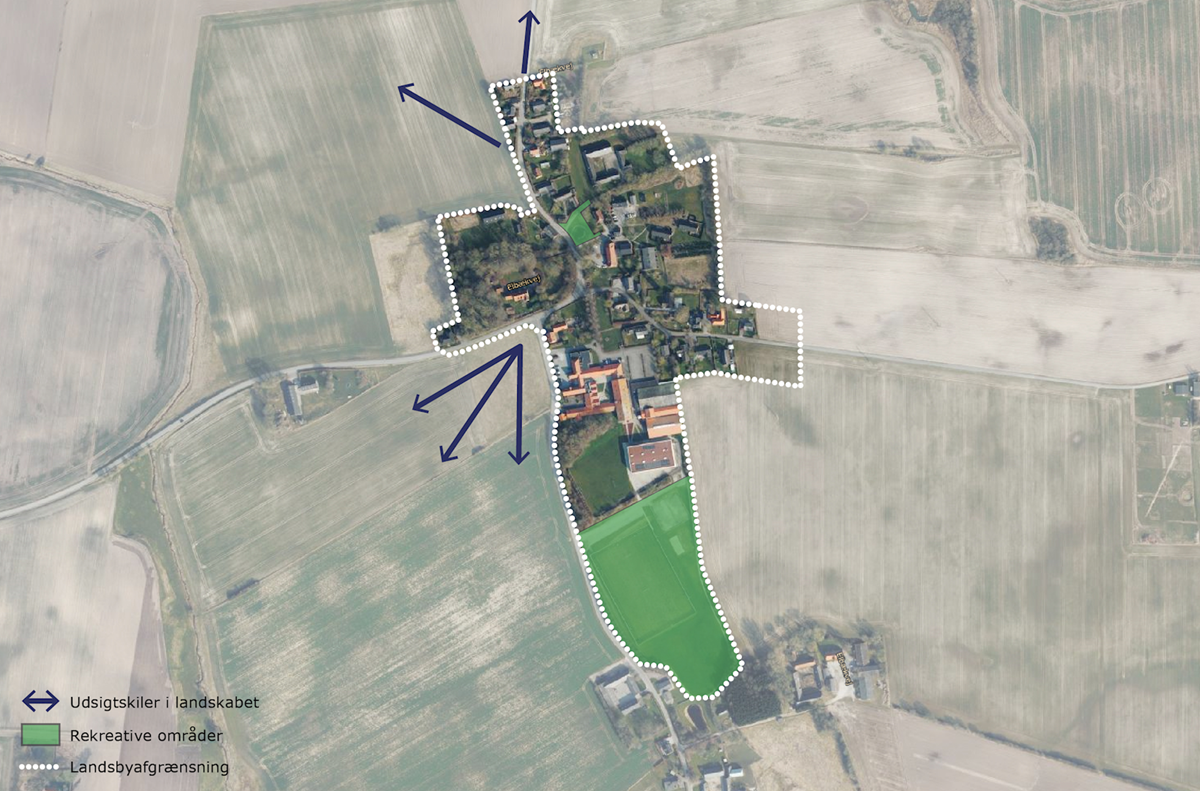 Da der er tilstrækkelige udviklingsmuligheder indenfor den gældende afgrænsning, sker der ikke udvidelse af landsbyafgrænsning til byggemuligheder. - Udsigtskiler