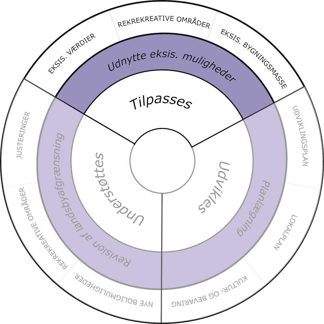 For at understøtte målsætningen skal der, i stedet for udvidelse af landsbyen, være et større fokus på, at finde muligheder inden for eksisterende afgrænsning.