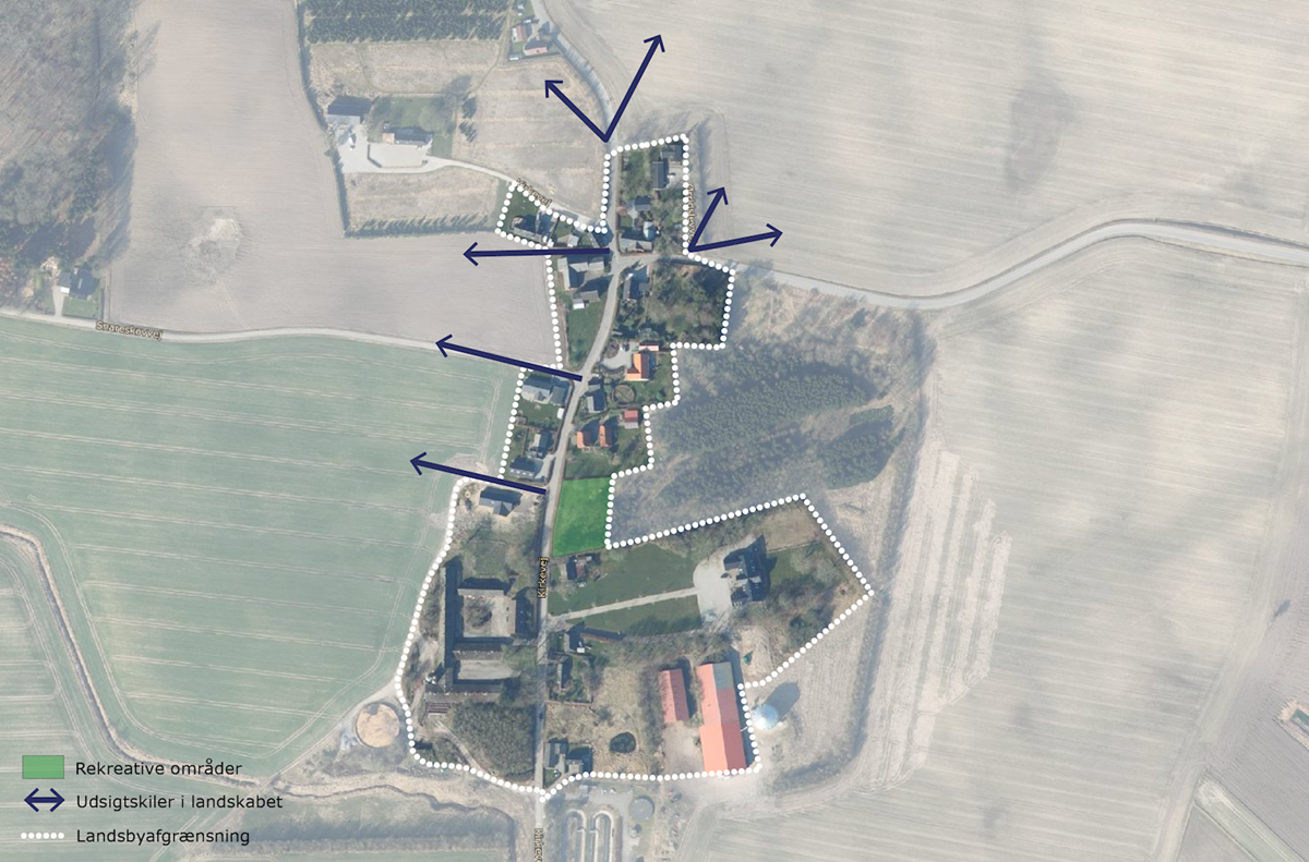 Da der er tilstrækkelige udviklingsmuligheder indenfor den gældende afgrænsning, sker der ikke udvidelse af landsbyafgrænsning til byggemuligheder. - Udsigtskiler