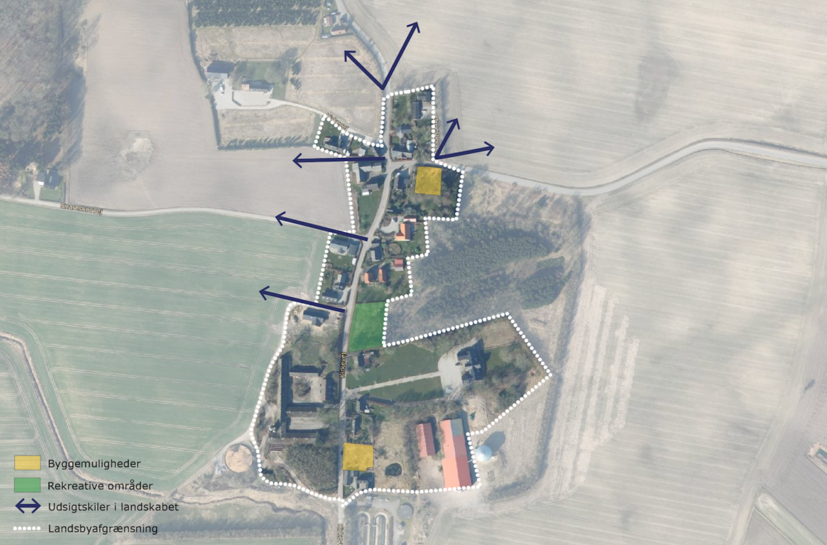 Udpegningerne er foretaget udelukkende for at give borgerne i landsbyen og evt. fremtidige bygherre, et overblik over potentielle fremtidsmuligheder. Det er altså ikke udtryk for, at kommunen kommer til at stå for evt. udvikling, byggerier eller indretning af fællesarealer. Udviklingen skal drives af private investorer, lokalråd, borgere eller fonde. Læs mere her, om hvad der kan søges støtte til i kommunen.