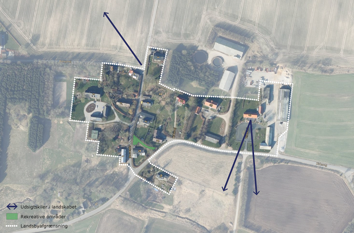 - Den sydlige del af landsbyen er omfattet af bevaringsværdige landskaber.