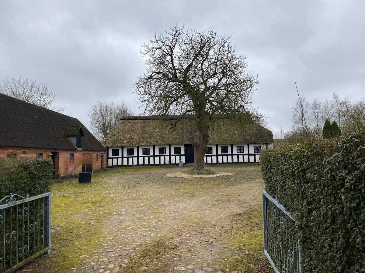 Billedet viser et ældre gårdanlæg i Sattrup.