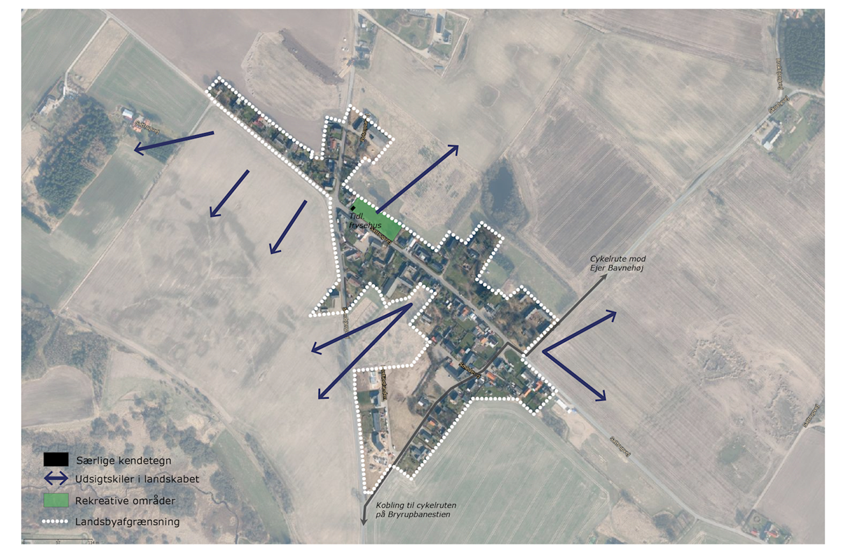 Da der er tilstrækkelige udviklingsmuligheder indenfor den gældende afgrænsning, sker der ikke udvidelse af landsbyafgrænsning til byggemuligheder. - Udsigtskiler