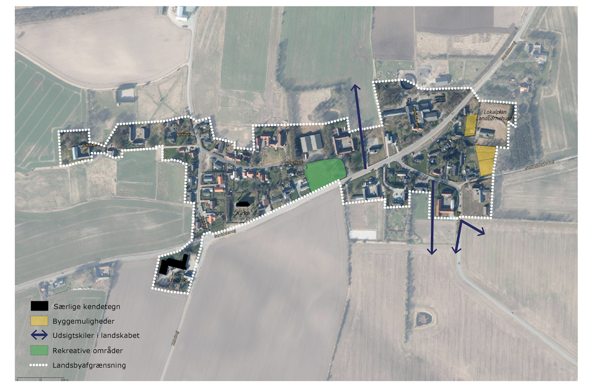 Illustrationen viser den strategiske planlægning for landsbyen.