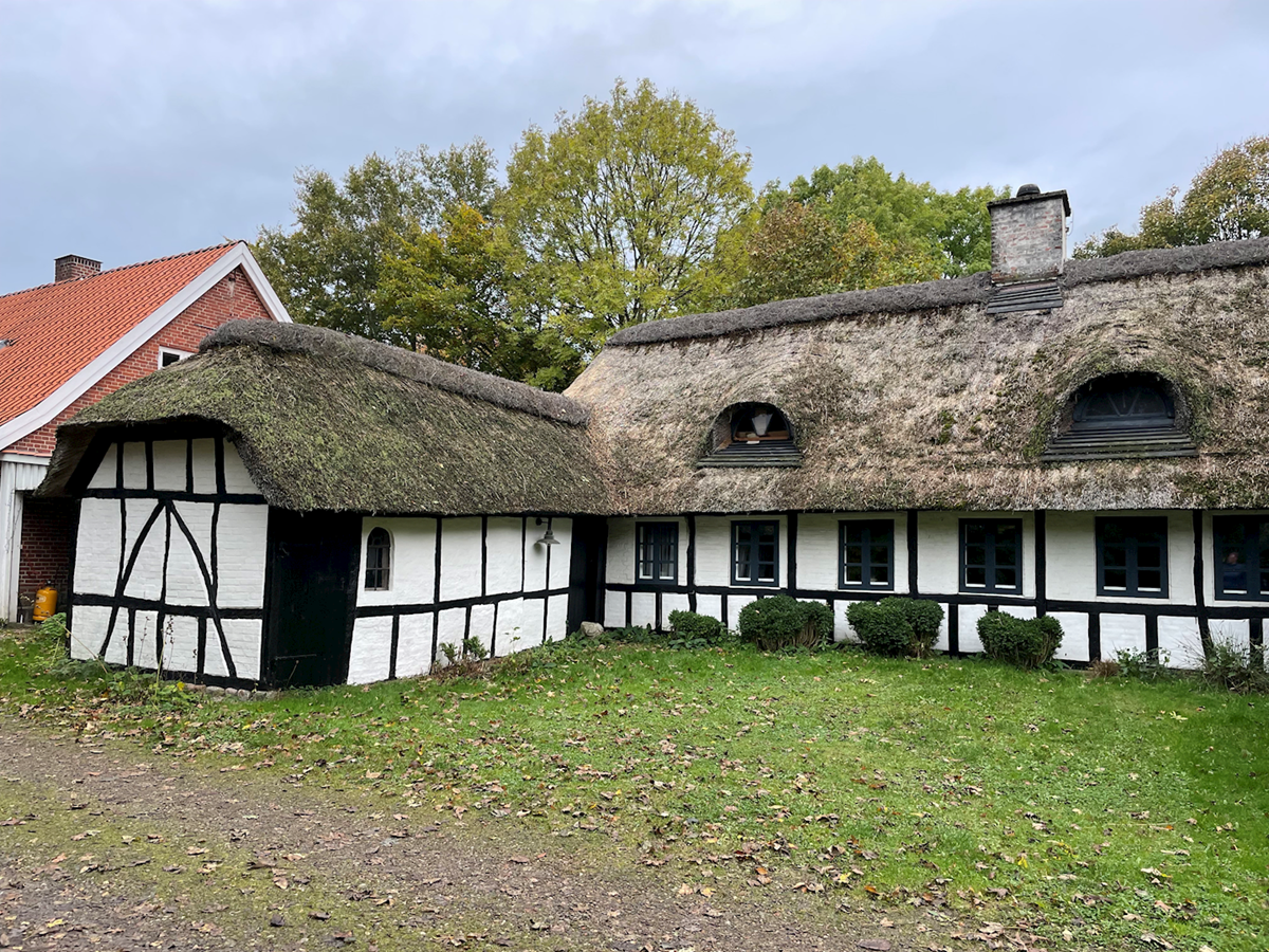 Billedet viser en gammel gård i Træden.