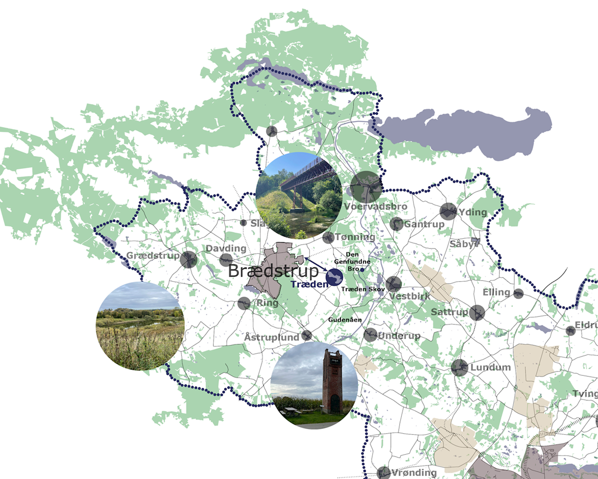 - Den østlige del af Træden ligger indenfor skovbyggelinjen afkastet fra Træden Skov.