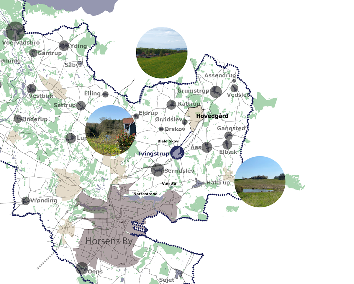 For at understøtte målsætningen udvides landsbyafgrænsningen, og der foreslås en mindre udstykning centralt i landsbyen, der potentielt kan forudsætte udarbejdelse af lokalplan. Det er Horsens Kommunes vurdering, at landsbyafgrænsningen i det konkrete tilfælde, kan udvides, samtidig med at den overordnede struktur i landsbyen bevares.