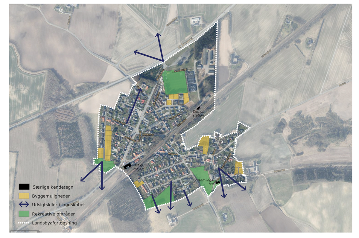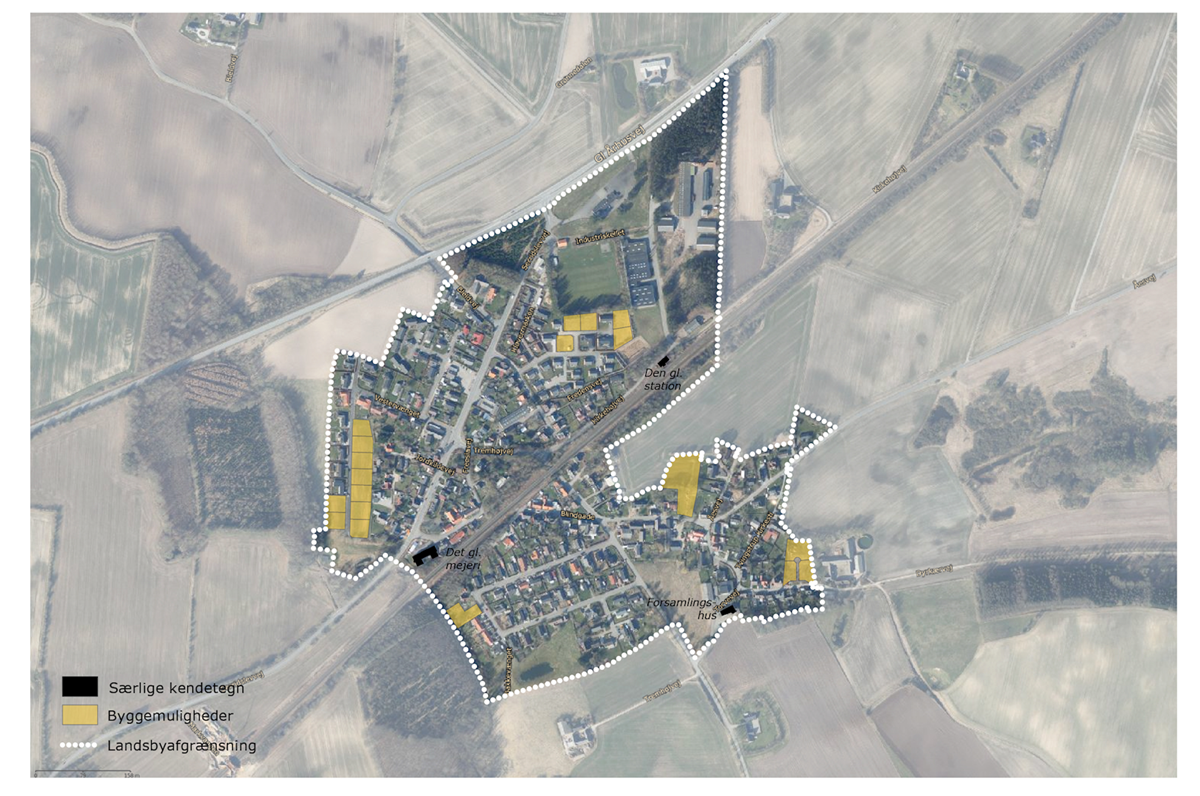 Udpegningerne er foretaget udelukkende for at give borgerne i landsbyen og evt. fremtidige bygherre, et overblik over potentielle fremtidsmuligheder. Det er altså ikke udtryk for, at kommunen kommer til at stå for evt. udvikling, byggerier eller indretning af fællesarealer. Udviklingen skal drives af private investorer, lokalråd, borgere eller fonde. Læs mere her, om hvad der kan søges støtte til i kommunen.