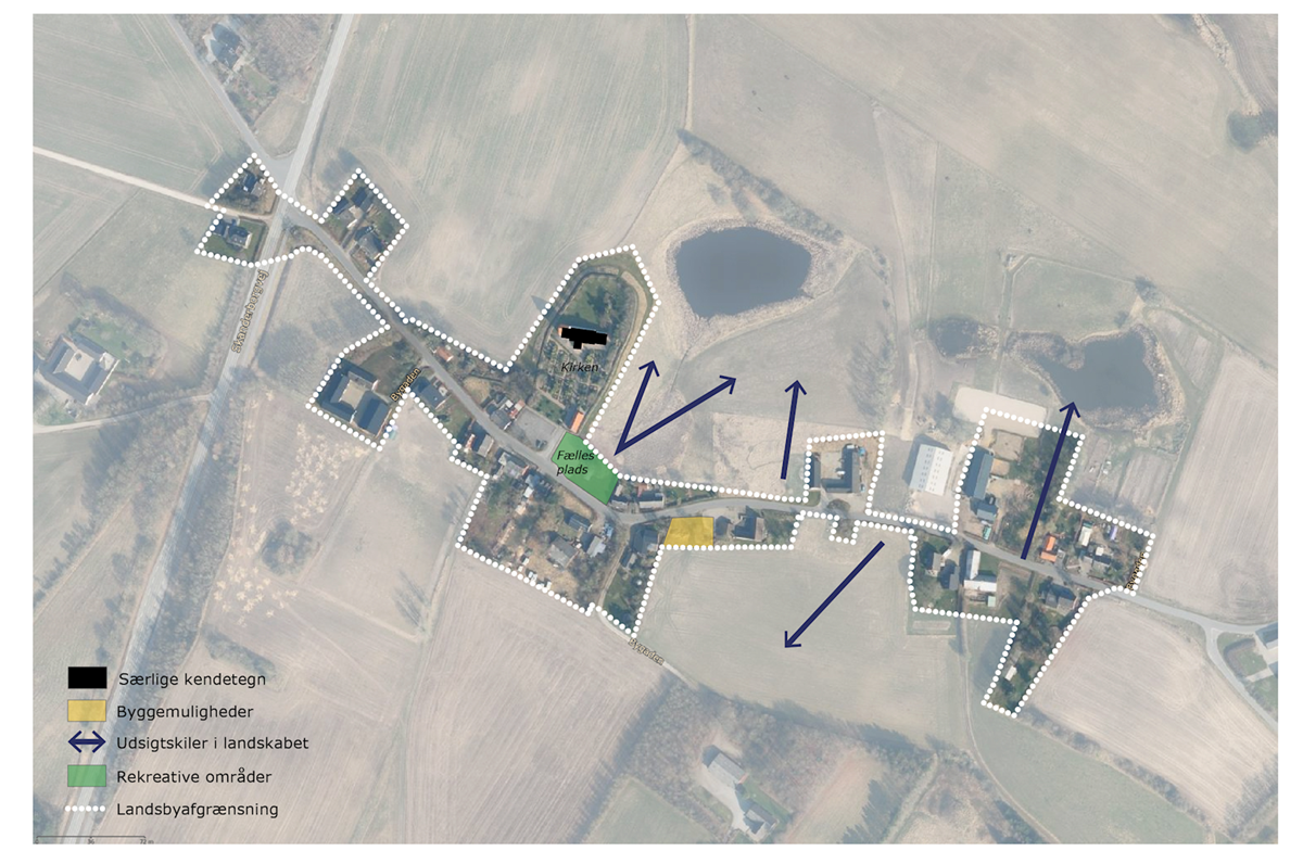 Udpegningerne er foretaget udelukkende for at give borgerne i landsbyen og evt. fremtidige bygherre, et overblik over potentielle fremtidsmuligheder. Det er altså ikke udtryk for, at kommunen kommer til at stå for evt. udvikling, byggerier eller indretning af fællesarealer. Udviklingen skal drives af private investorer, lokalråd, borgere eller fonde. Læs mere her, om hvad der kan søges støtte til i kommunen.