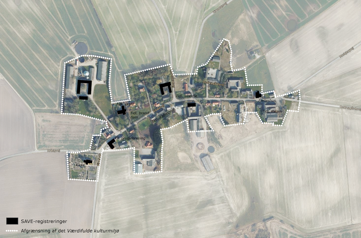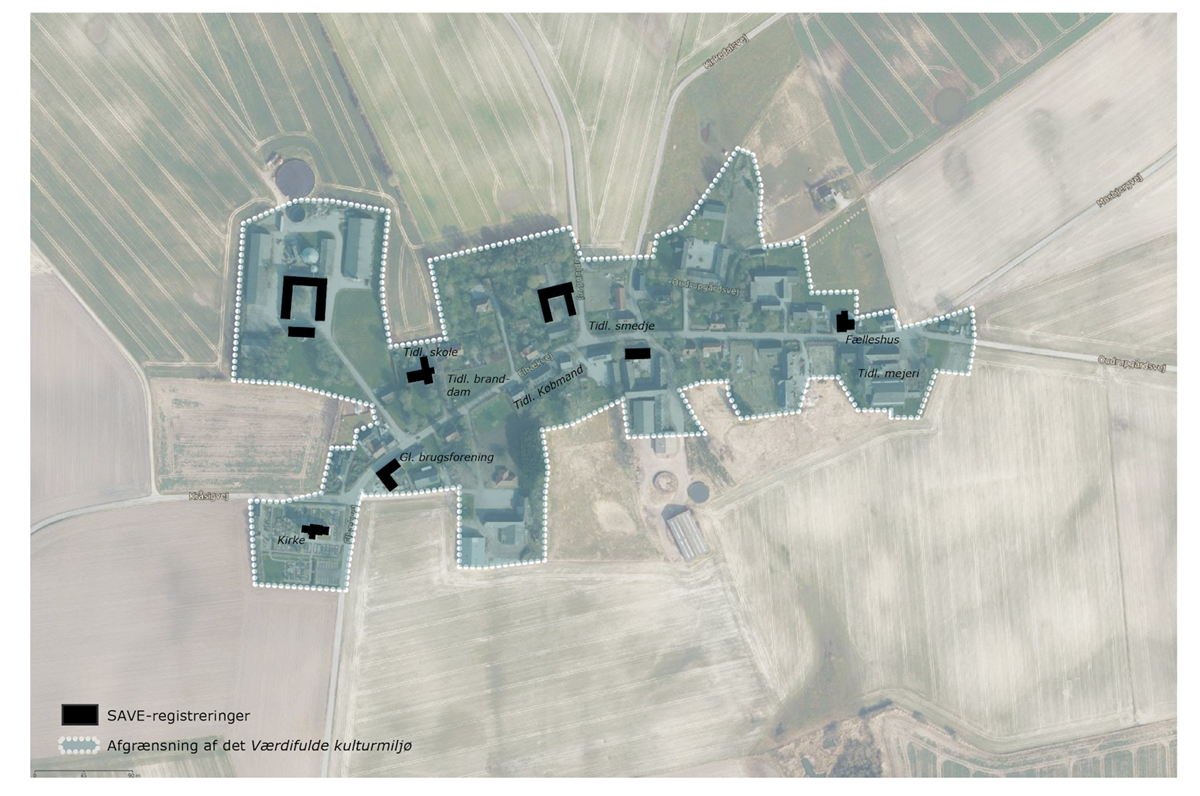 Billeder af afgrænsningerne for landsbyen og det Værdifulde kulturmiljø.