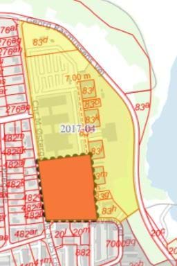 Afgrænsningen af henholdsvis den ny kommuneplanramme 11OF14 (orange felt) og lokalplanen Tillæg nr. 1 til Lokalplan 2017-04, Offentlige formål og erhverv, Chr M Østergaards Vej, Horsens (prik signatur) er sammenfaldende.