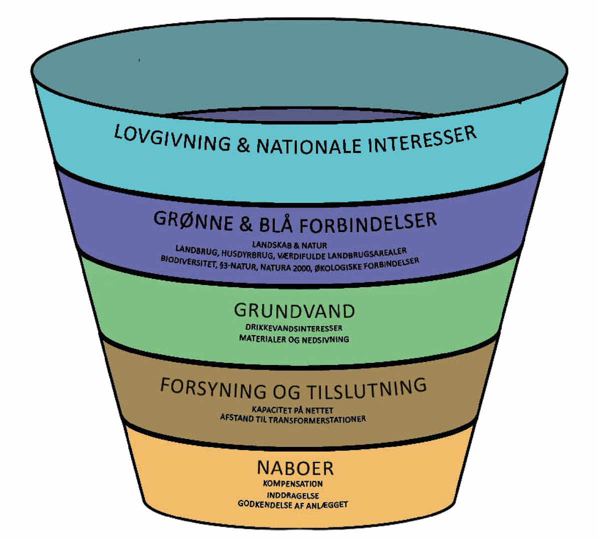- Perspektivområdet overlapper med udpegninger af henholdsvis naturbeskyttelsesområder og udpegninger af økologiske- og potentielle økologiske forbindelser. Udpegningerne skal som udgangspunkt friholdes for tekniske anlæg, hvorfor projektet skal tilpasses. Detailplanlægning skal redegøre for, at den økologiske funktionalitet ikke nedsættes og at naturens udviklingspotentiale ikke forringes.