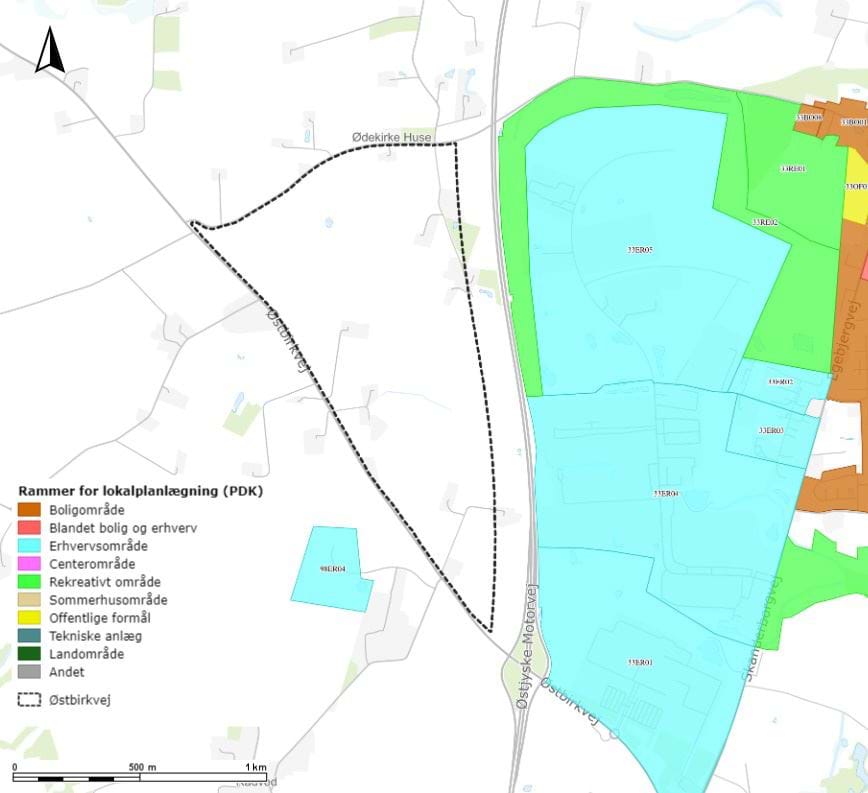 Planområdet ligger i landzonen og omfattes derfor af Tillæg 2021-20. Tillægget udpeger arealerne og udlægger konkrete rammer for området. Lokalplaner vil i fremtiden overføre arealerne til byzone.