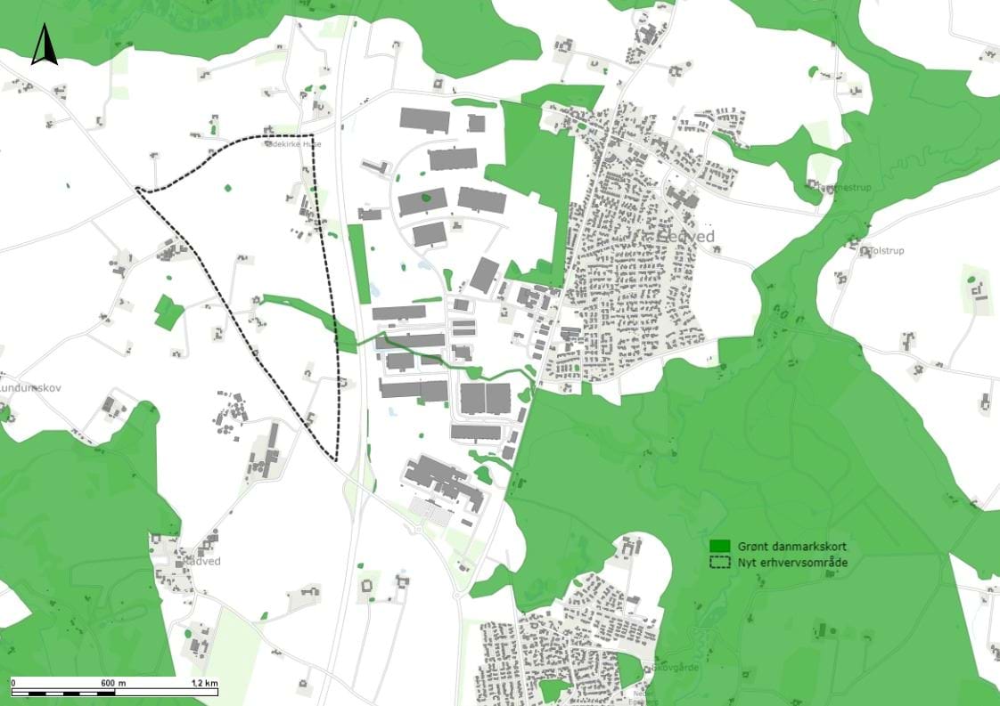 Kortbilaget, som følger retningslinjer justeres med det nye arealudlæg.