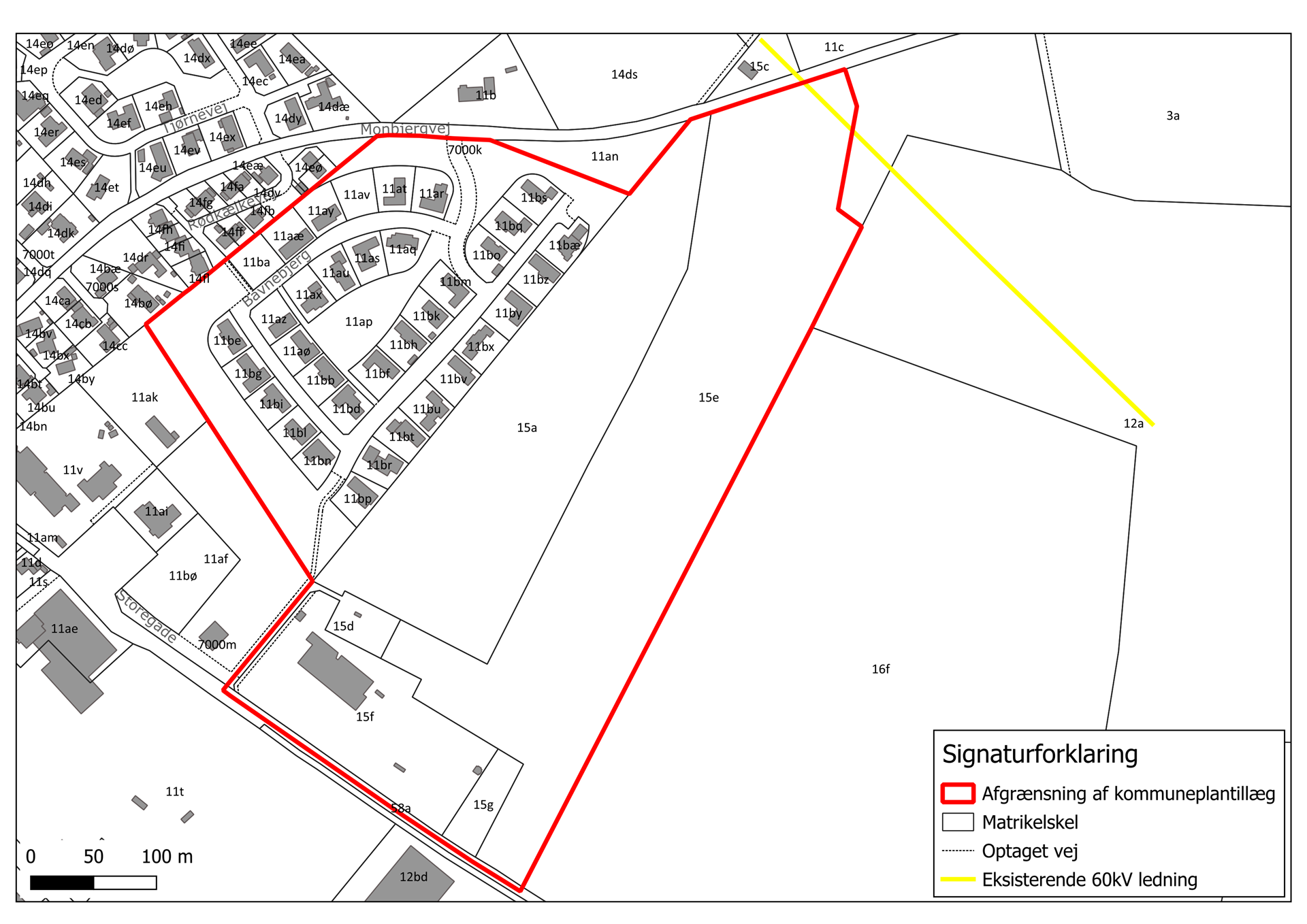 I kommuneplantillæggets nordlige område forefindes en 60 kV luftbåren højspændingsledning.